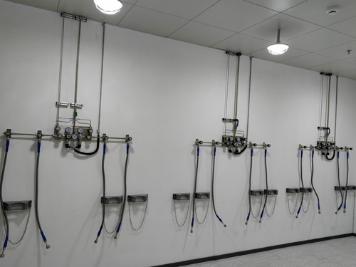 7.氣瓶間內存貯的氣瓶分為帶防倒鏈的氣瓶吊架固定不動,氣瓶吊架牢固結實、外觀大度。氣瓶吊架分為鋁各種合金制成而成。